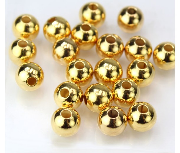 Beads plated with gold, valued for their rich color and affordability, used in costume and fashion jewelry.