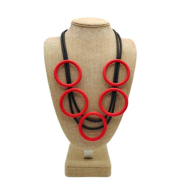 Necklace sets made from rubber, valued for their flexibility and durability, used in casual and sporty jewelry.