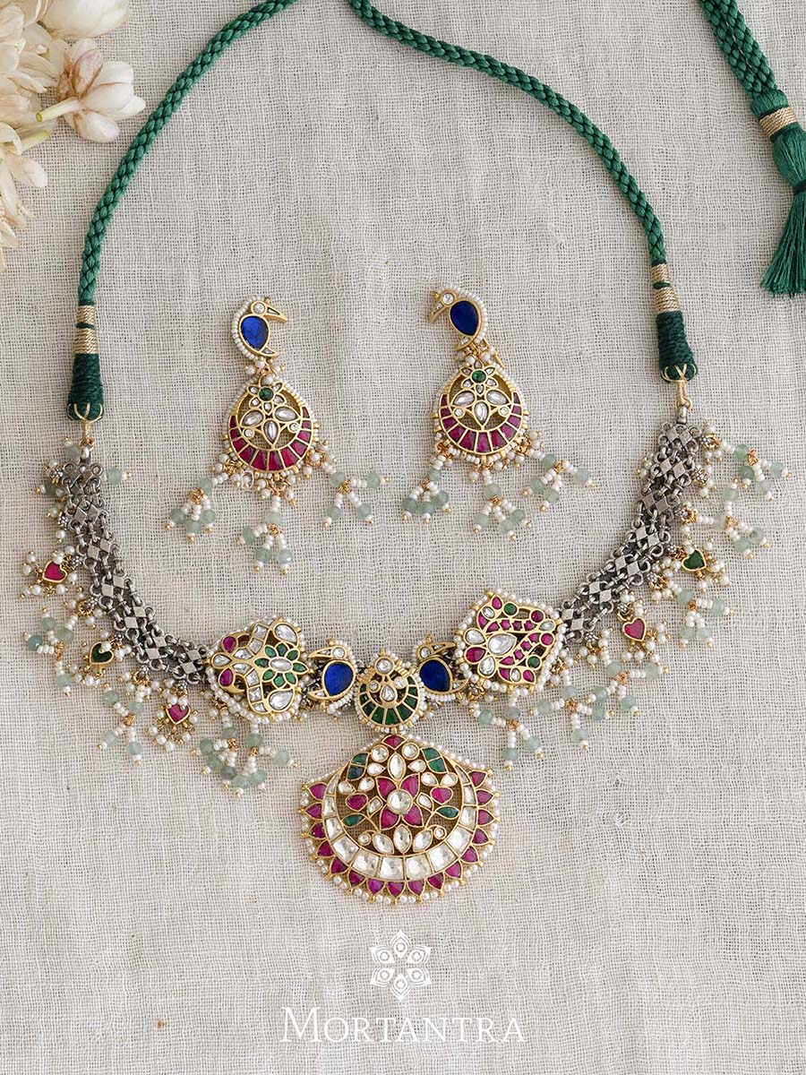 Necklace sets inspired by tribal designs, known for their bold and unique appearance, used in ethnic and bohemian jewelry.